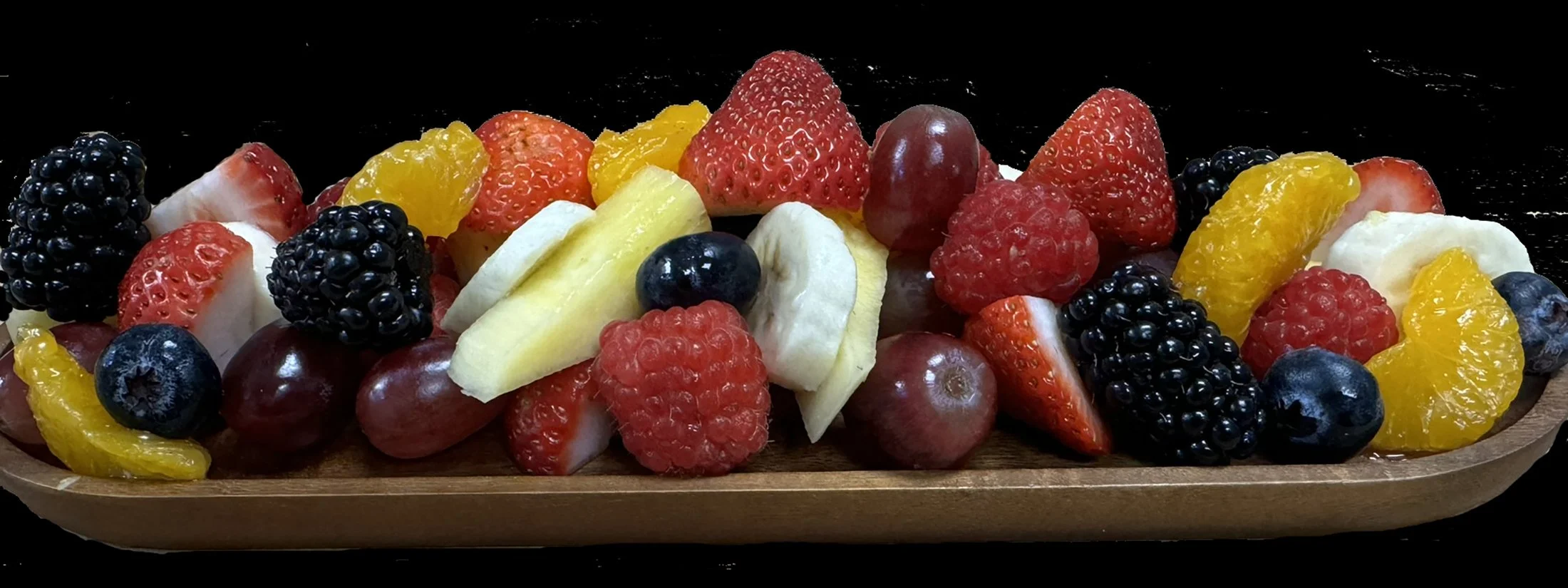 A vibrant mix of seasonal fresh fruits, carefully sliced. A refreshing and nutritious option, perfect as a light snack or a sweet finish to your meal!