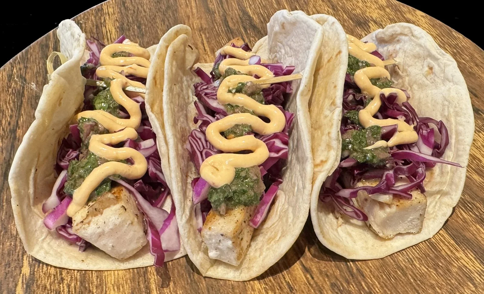 Experience coastal flavors with our exquisite Mahi Mahi Fish Tacos! Enjoy three succulent Mahi Mahi tacos, prepared just how you like them – perfectly grilled or crispy fried – served on warm flour tortillas. We top them with fresh, crisp cabbage, and a vibrant duo of our homemade chimichurri and zesty chili aioli. Served with a side of our homemade fire-roasted tomato salsa. A fresh and exciting twist on a classic!