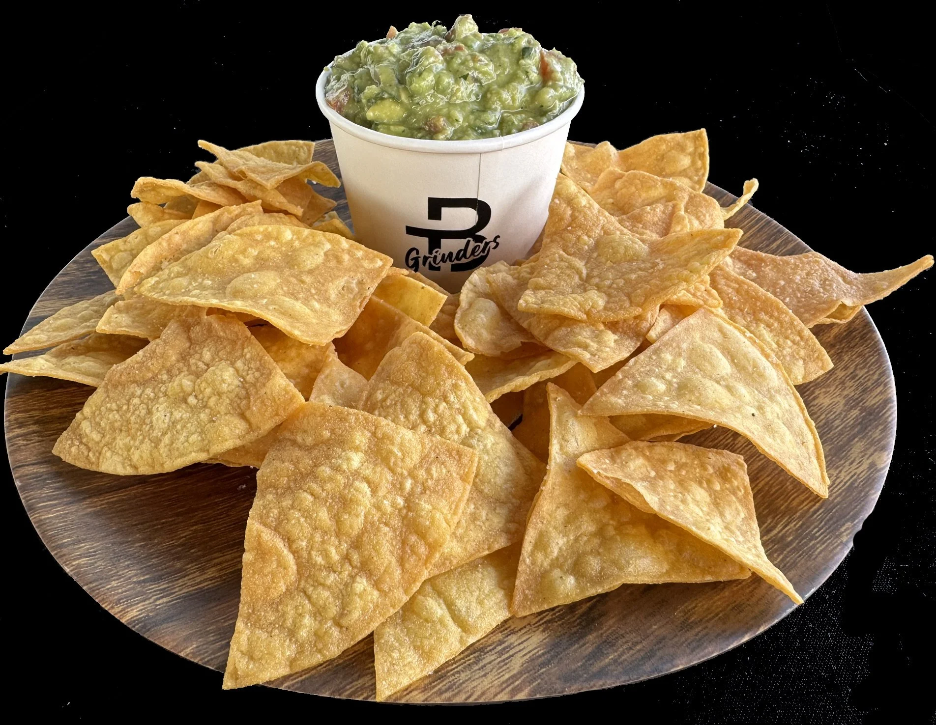 Enjoy a generous portion of our homemade corn chips, perfectly fried to a golden crisp, served alongside a side of our rich and creamy homemade guacamole. It's a fresh, flavorful, and incredibly satisfying classic.
