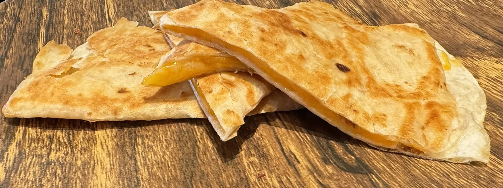 A simple pleasure, perfected! Our Cheese Quesadilla features a generous cheddar and jack cheese blend melted between a warm flour tortilla. Grilled golden brown on the flattop, it's gooey, delicious, and a perfect choice for any cheese lover. Served with a side of our homemade fire-roasted tomato salsa.