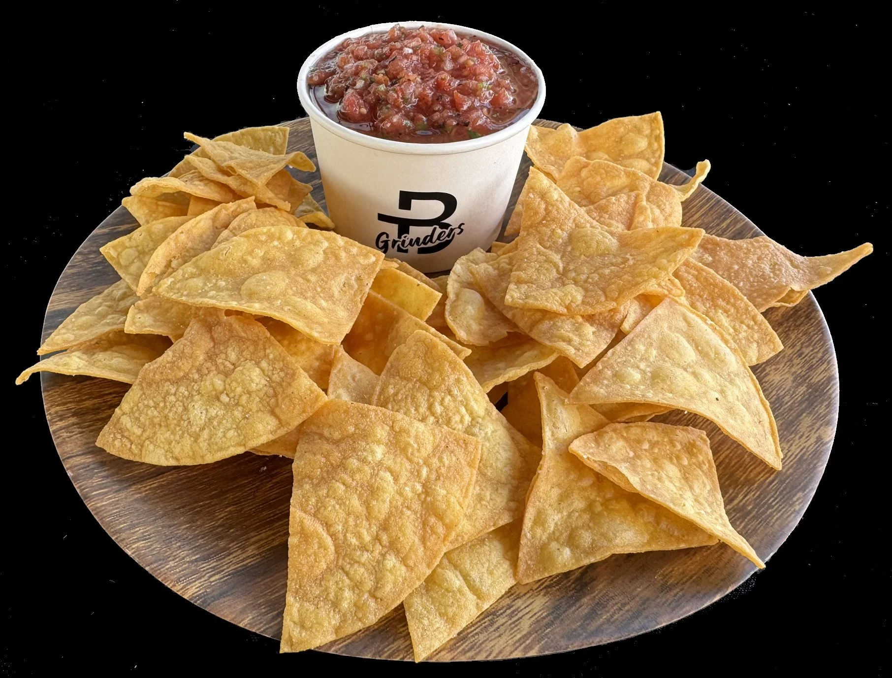 Enjoy a generous portion of our homemade corn chips, perfectly fried to a golden crisp, served alongside a side of our warm, rich, and absolutely delicious homemade queso.